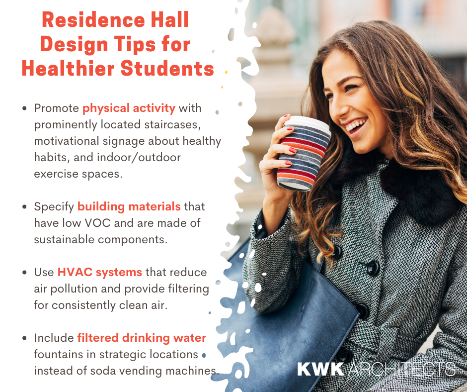 There are many definitions, but in general, a healthy residence hall is architecturally designed to promote physical activity and healthy habits, while using healthy materials and building systems to provide a healthy environment.