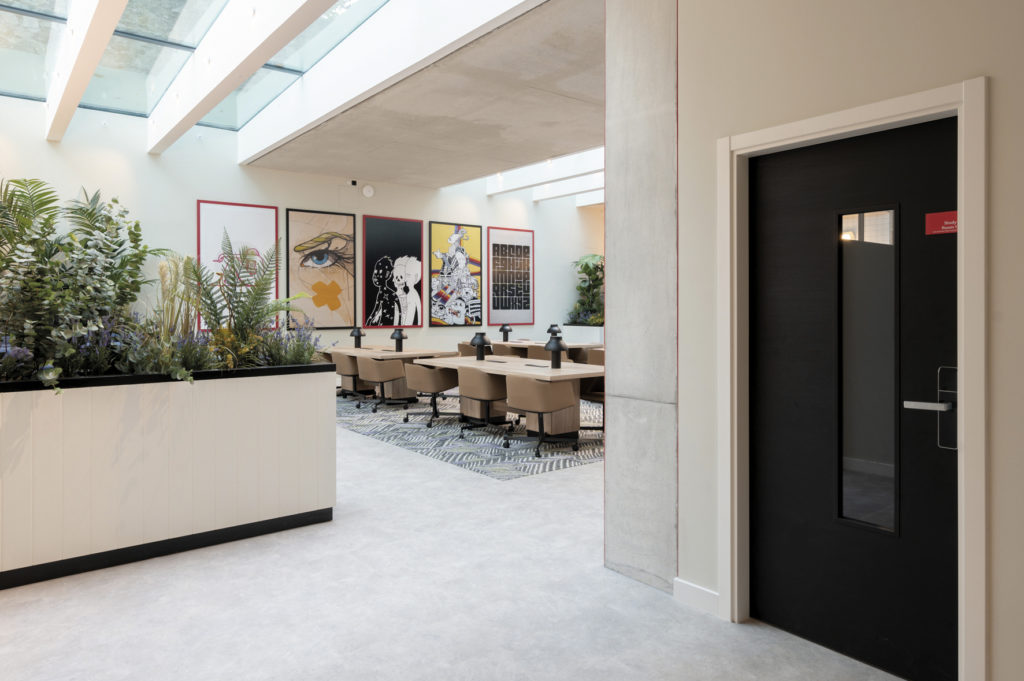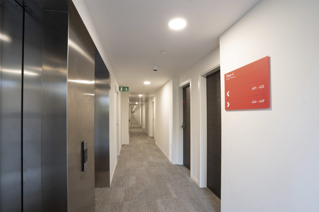 For the room entrances, the choice went for the Block EI30 AC32dB, a solution that meets the demanding requirements of fire resistance and acoustic isolation, essential in a building designed to host students. In the interiors, several units of the Sliding Block model were installed, this solution contributes to maximising the functionality and the use of the spaces.