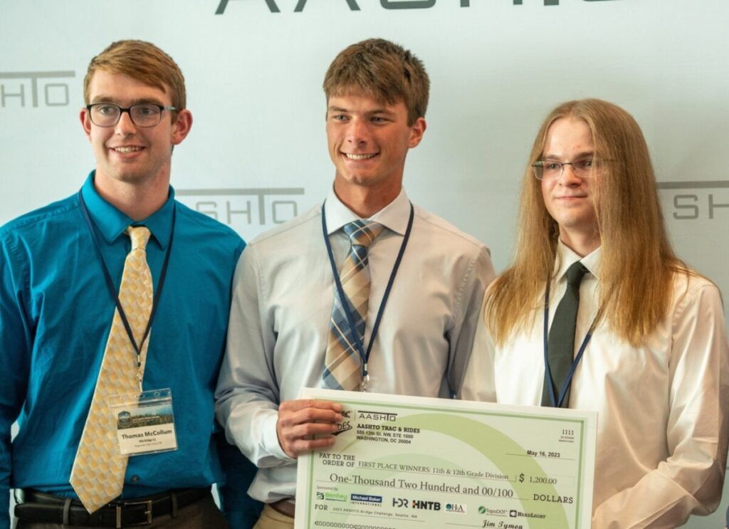 Formerly known as the AASHTO TRAC Contest, the AASHTO Bridge Challenge is a national competition designed to promote an interest in science, technology, engineering, and math (STEM) through hands-on, real-world applications. It also provides a unique opportunity for students to gain confidence in their speaking skills in front of a large audience, which included departments of transportation, engineering consulting firms, AASHTO government officials, parents, teachers, and students.  Also sponsoring the event were Michael Baker International, TopoDOT, HDR, HNTB, Headlight, and Houseman & Associates.