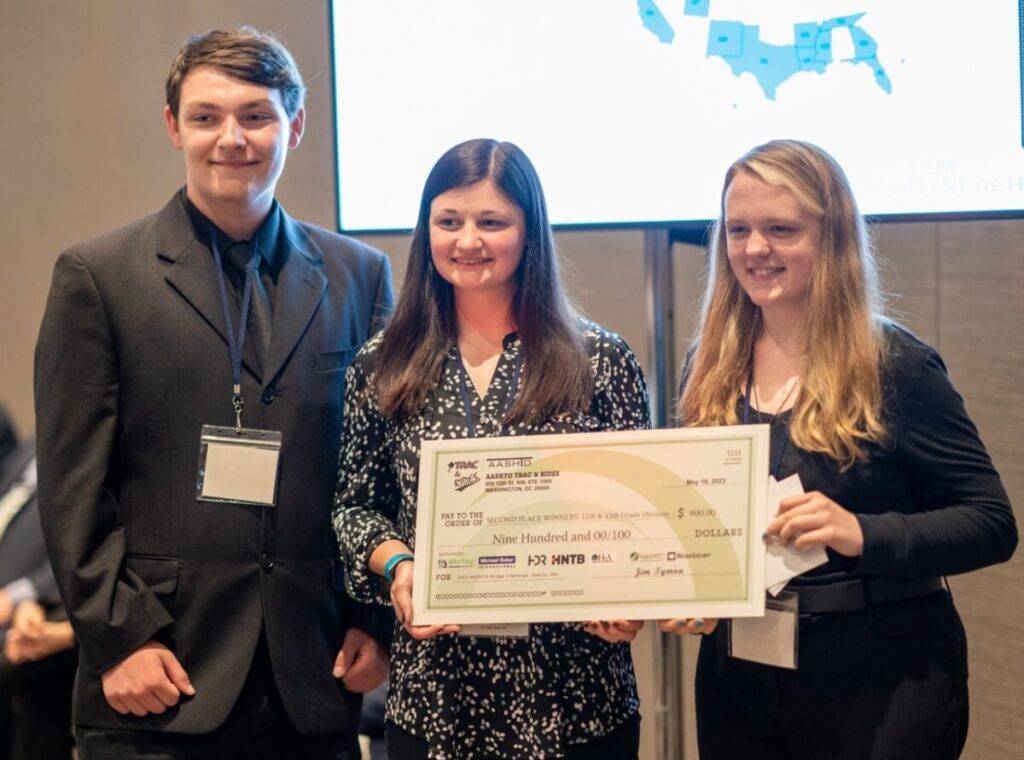 SAB Civil Engineering, second-place winners for 11th and 12th grades, receives a check from AASHTO. Image courtesy of Bentley Systems.
